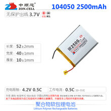 中顺芯 加工厂DIY组装户外照明救援旅行装备充电宝音箱数码产品专用无保护出线系列聚合物锂电池3.7V 104050-2500mAh/无板出线