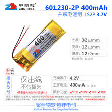 中顺芯601230蓝牙智能穿戴设备耳机点读录音翻页笔汽车遥控钥匙无线鼠标轻量化改造小型聚合物锂电池3.7V 并联加厚400mAh