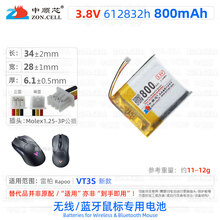 中顺芯无线蓝牙电竞机械鼠标聚合物锂电池3.7V 适用达尔优雷蛇华硕赛睿海盗船蜻蜓双飞燕鑫顺天仁魔玄派 雷柏/VT3S新款【3.8V高压】