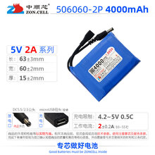 中顺芯 5V2A升压锂电池 户外LED应急照明UPS救援仪器稳压模块无线WIFI单片机USB小风扇微马达恒压电源10W 5V2A 4000mAh/506060-2P